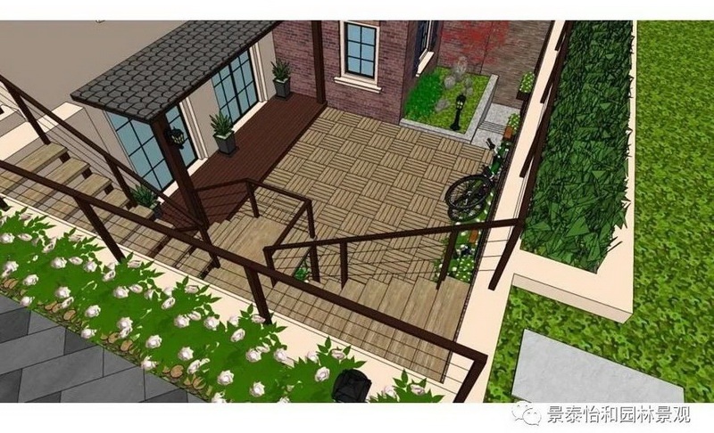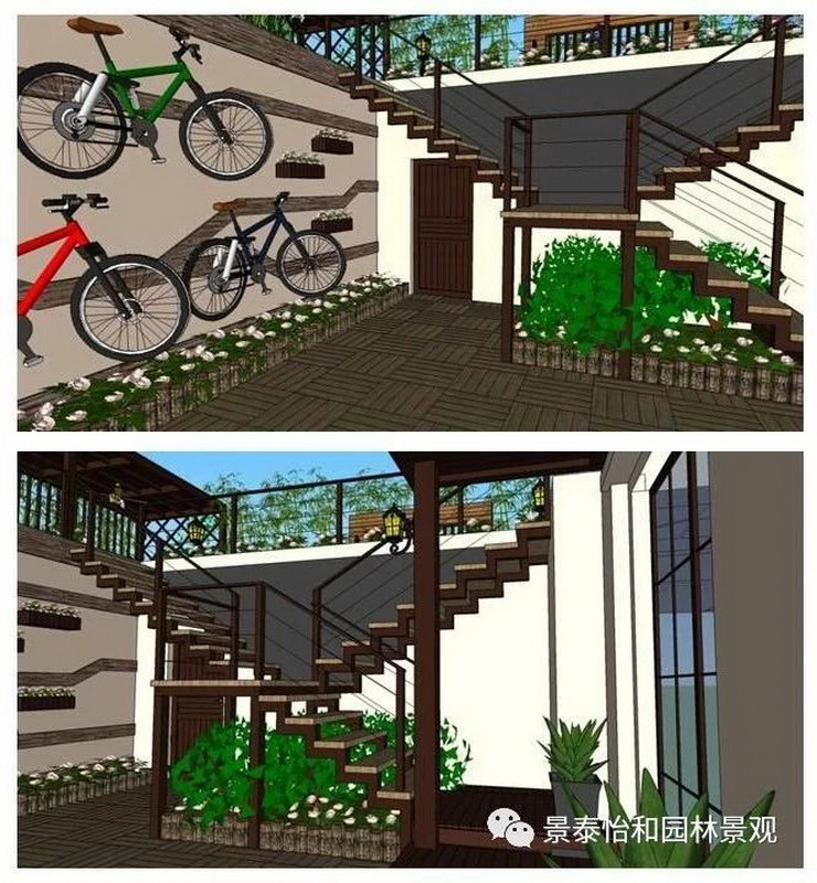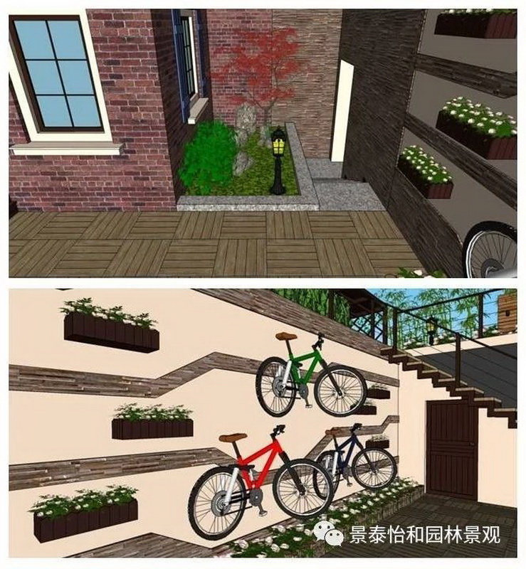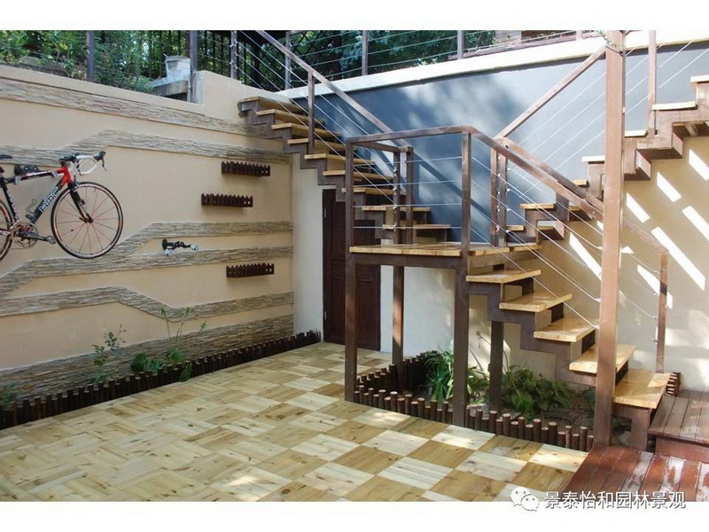 庭院應與周邊環境協調一致,能利用的部分盡量借景,不協調的部分想方設法視覺遮蔽。