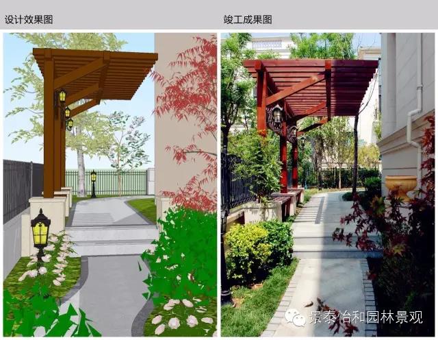 方案的設計注重空間的豐富性,側院區域通過廊架與藤本植物的組合,營造出相對私密的休閑空間。道路是比較富于變化的曲線形式,兩側種植高低錯落的植物。