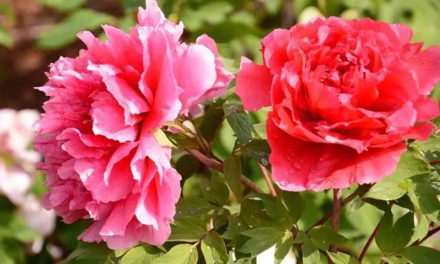 牡丹忌熱怕濕,夏季應將植株置于通風涼爽處,不必過多澆水,保持盆土濕潤即可,以免爛根。